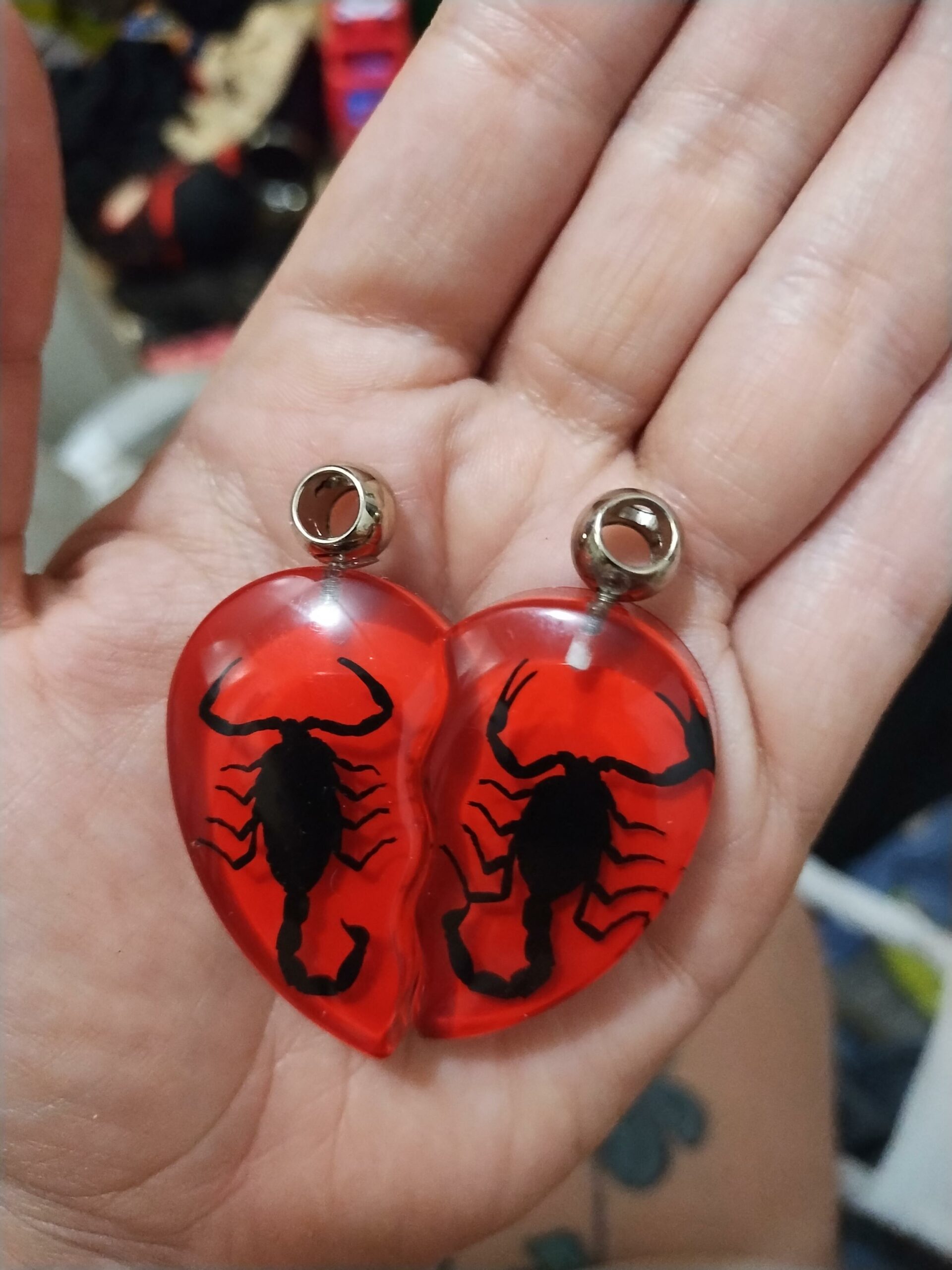 Real Scorpion necklace Red Heart set. These two necklaces come together to form a heart. One for you and one for your partner in crime.