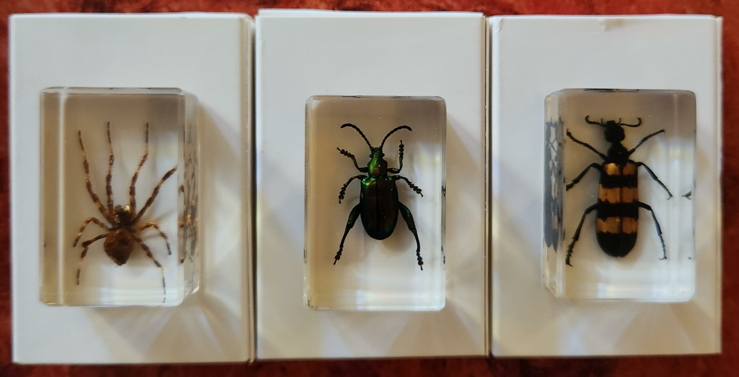 3 Piece Insect in Resin Set, Real Insect Collection, Spider, Beetle