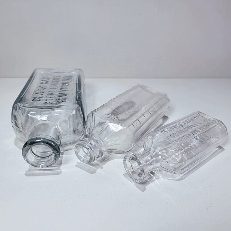 3 Vintage Glass Bottles, Apothecary Set B