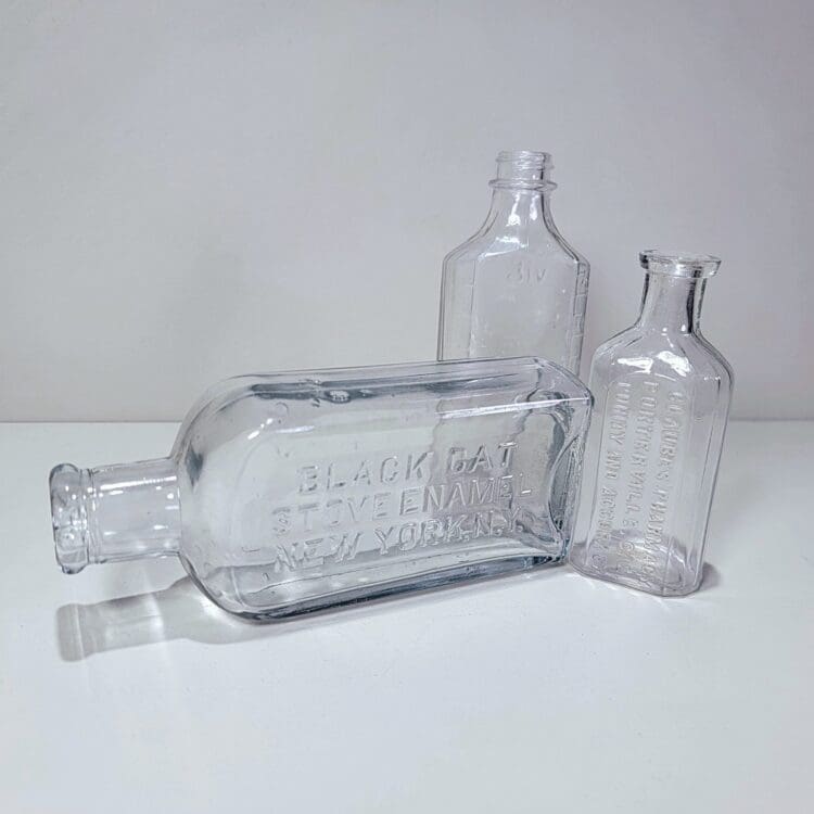 Set of 3 Vintage Clear Glass Bottles
