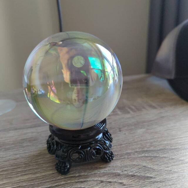 I wish I wouldve gotten a picture before I wrapped this as a gift for a friend. The crystal ball was absolutely flawless and packaged very well.