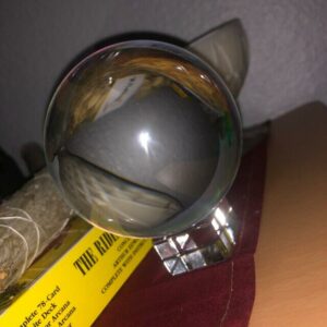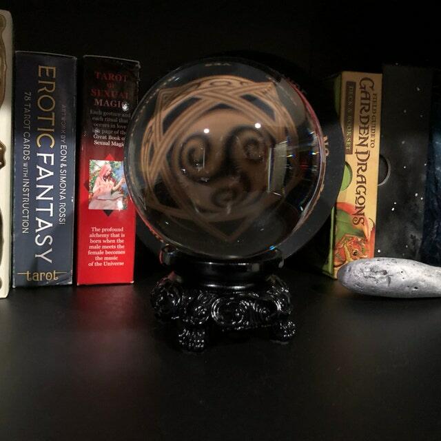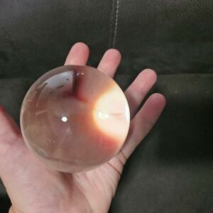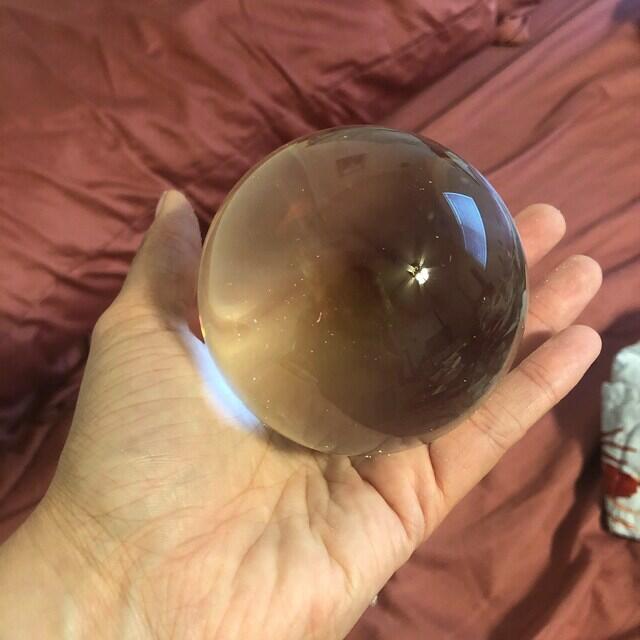 This Real Crystal Ball is brand new and never used. It has been hand polished to a near flawless sphere. Size is 80mm ( a little over 3 inches diameter) and comes with your choice of a free clear lucite stand (style can vary) or a lovely black ornate stand as seen in photo. This is a processed item, made of quartz and glass mixture. This is the only way to obtain this level of clarity and flawlessness.