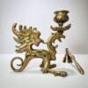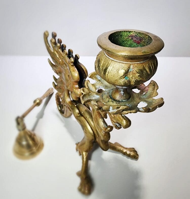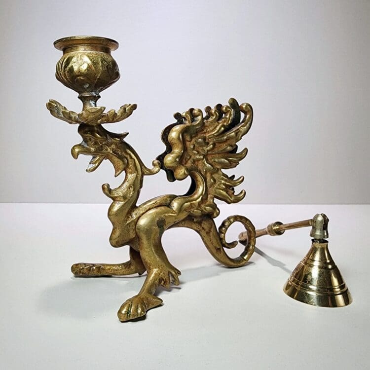 Antique Brass Griffin Candle Holder w/ Snuffer #B