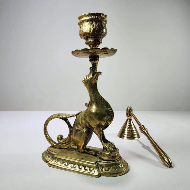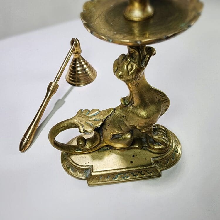 Antique Brass Griffin Candle Holder w/ Snuffer