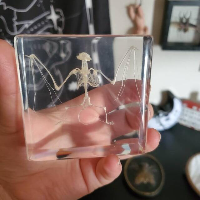 Bat Skeleton in Resin, Small Bat in Lucite, Oddities, Curiosities