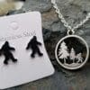 Bigfoot Jewelry Set, Sasquatch Pendant and Earrings, Cryptid Creatures