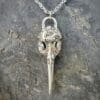 This quaint necklace is a Humming Bird Skull Pendant which is embellished with a little flower detail. Delicate style with a touch of darkness.