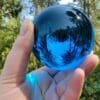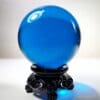Our crystal balls and gazing balls are optically pure and the highest quality available. This Blue Crystal Ball has been hand polished to a perfectly smooth sphere. This piece has a gorgeous deep pure blue color and, with the right light is quite vibrant.