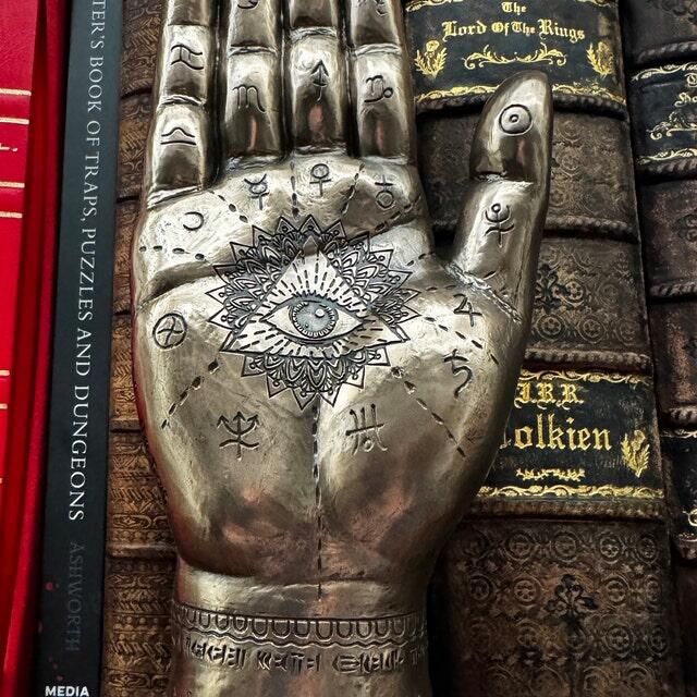 Bronze Hamsa Palmistry Hand, Protection and Good luck Statue