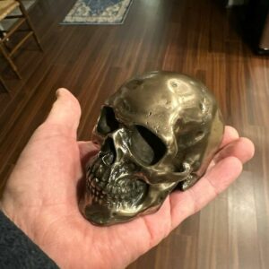 This is one of our more popular skulls. The Bronze Skull is made of a designer resin mix with bronze powder, hand painted and polished Individually. Goes great with modern decor or Gothic decor!