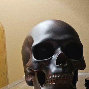 This anitomical skull is slightly stylized and expertly hand painted to give the look of a Cast Iron Skull. Add it to your other Oddities or have it be your focal point. Either way, it would be a stunning addition to any decor, from Gothic to Modern.