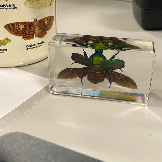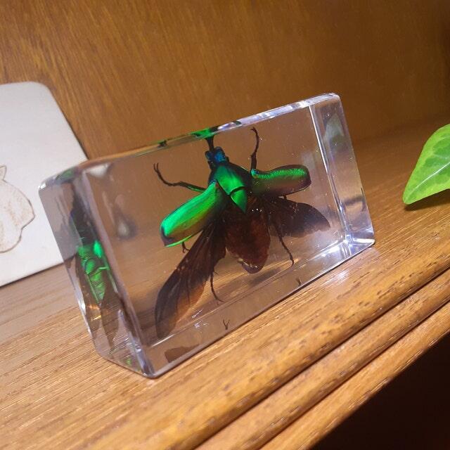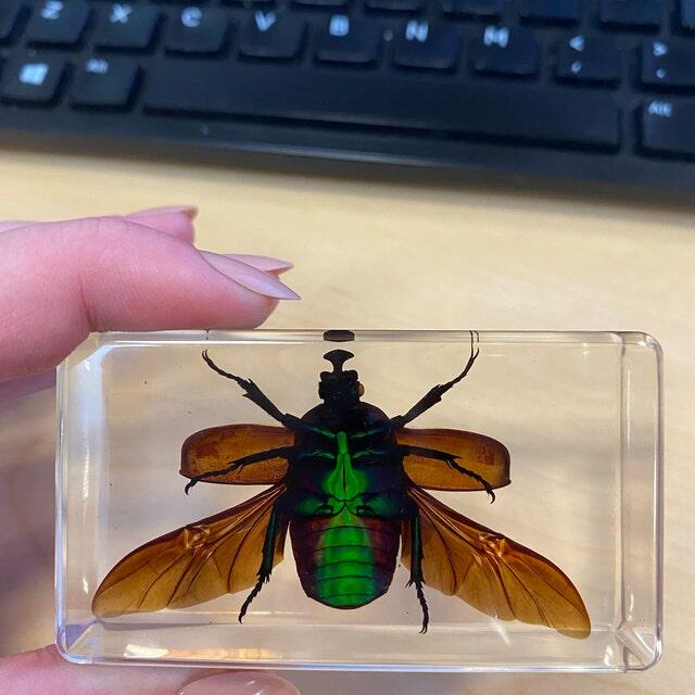 Chafer Beetle Wings Open, Green Beetle in Resin, Curiosities