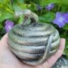 Make of high quality cold cast resin and hand painted. Measure approximalty 4 inches tall by 4 1/2 inches in dimeter. Because this is a hand painted item the finish may vary slightly.
