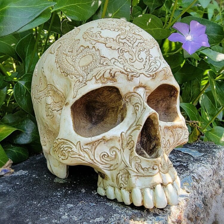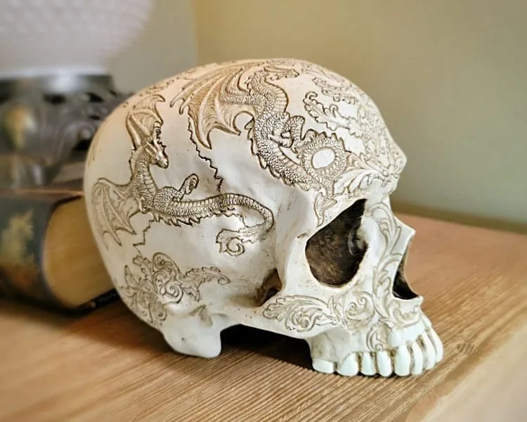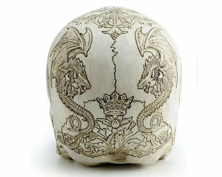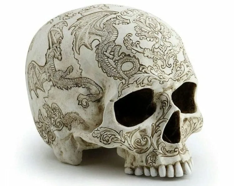 Dragon Skull, Ornate Carved Human Skull, Gothic Decor