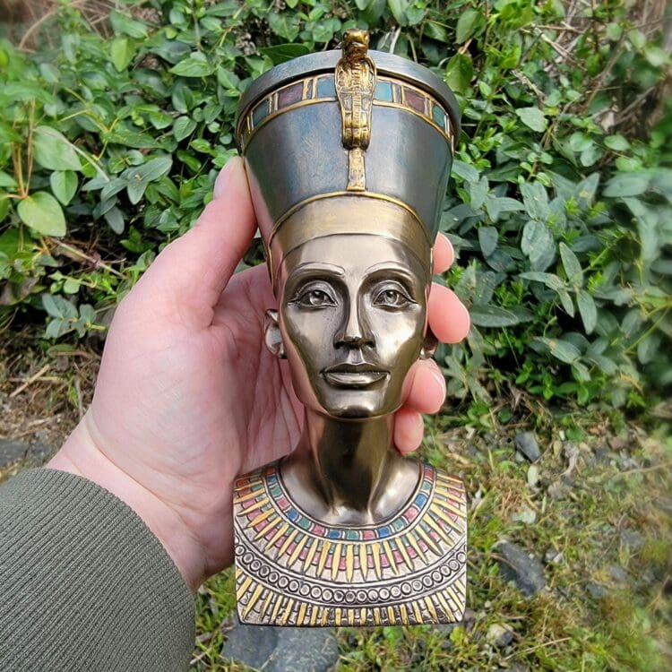 Egyptian Queen Nefertiti Bust, Bronze Secret Stash Trinket Box