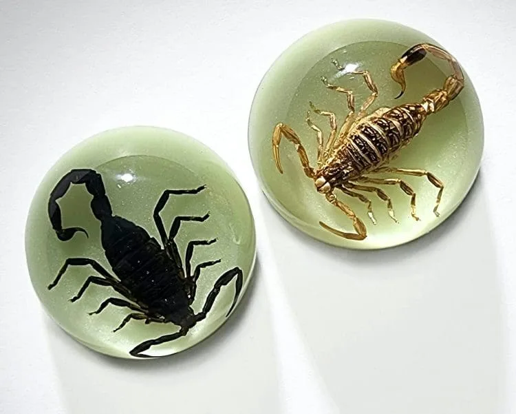 Set of magnets with scorpions in glow in the dark resin. Arrived quick and in perfect condition. Look great and work just like supposed to.