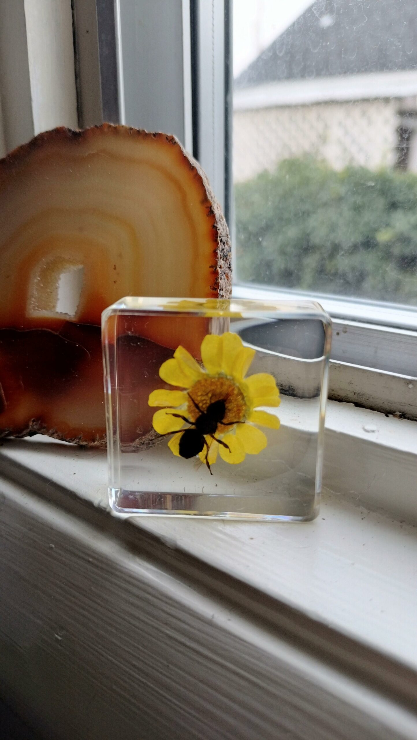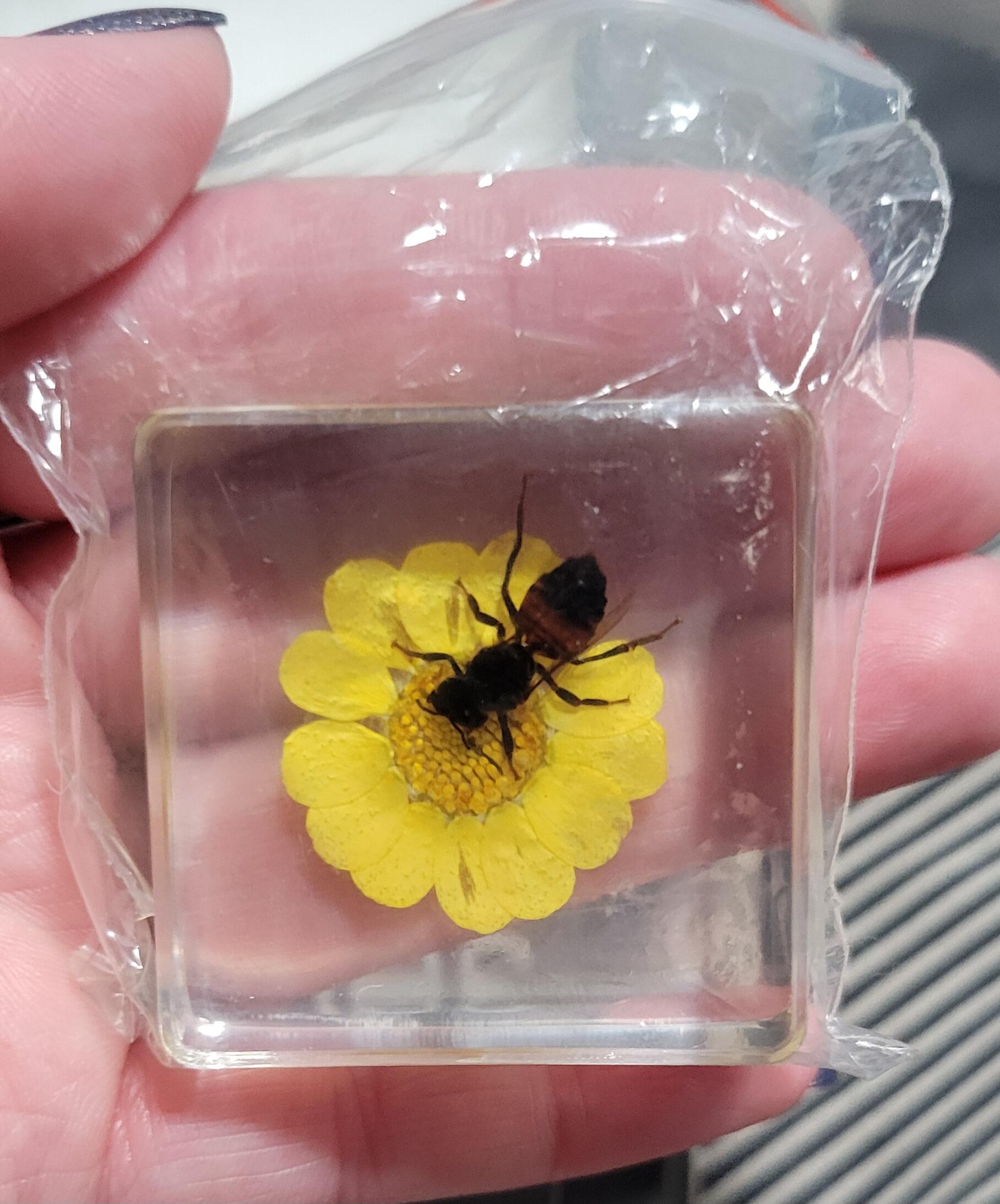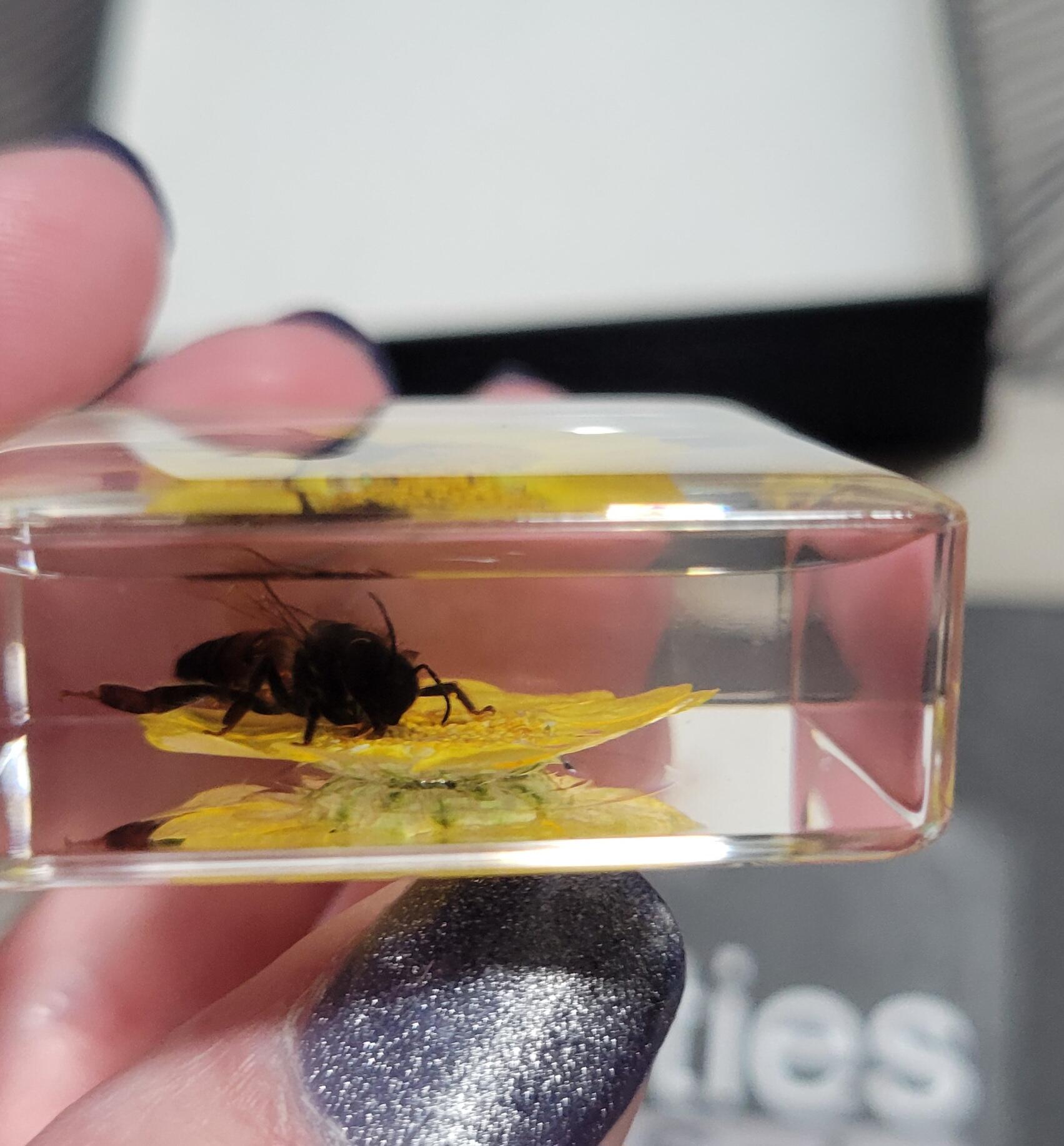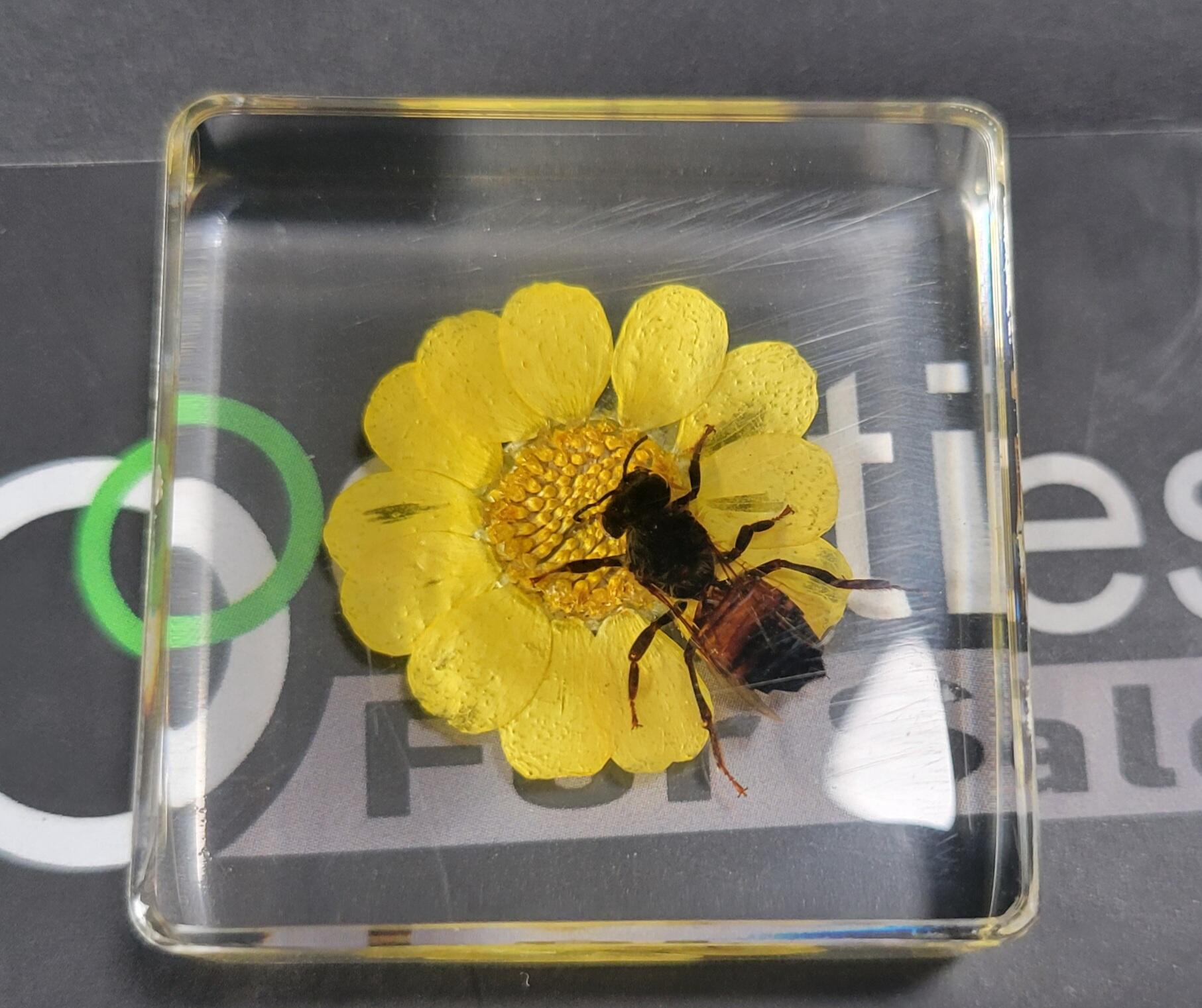 Honey Bee with Flower in Resin, Tiny Insects in Resin