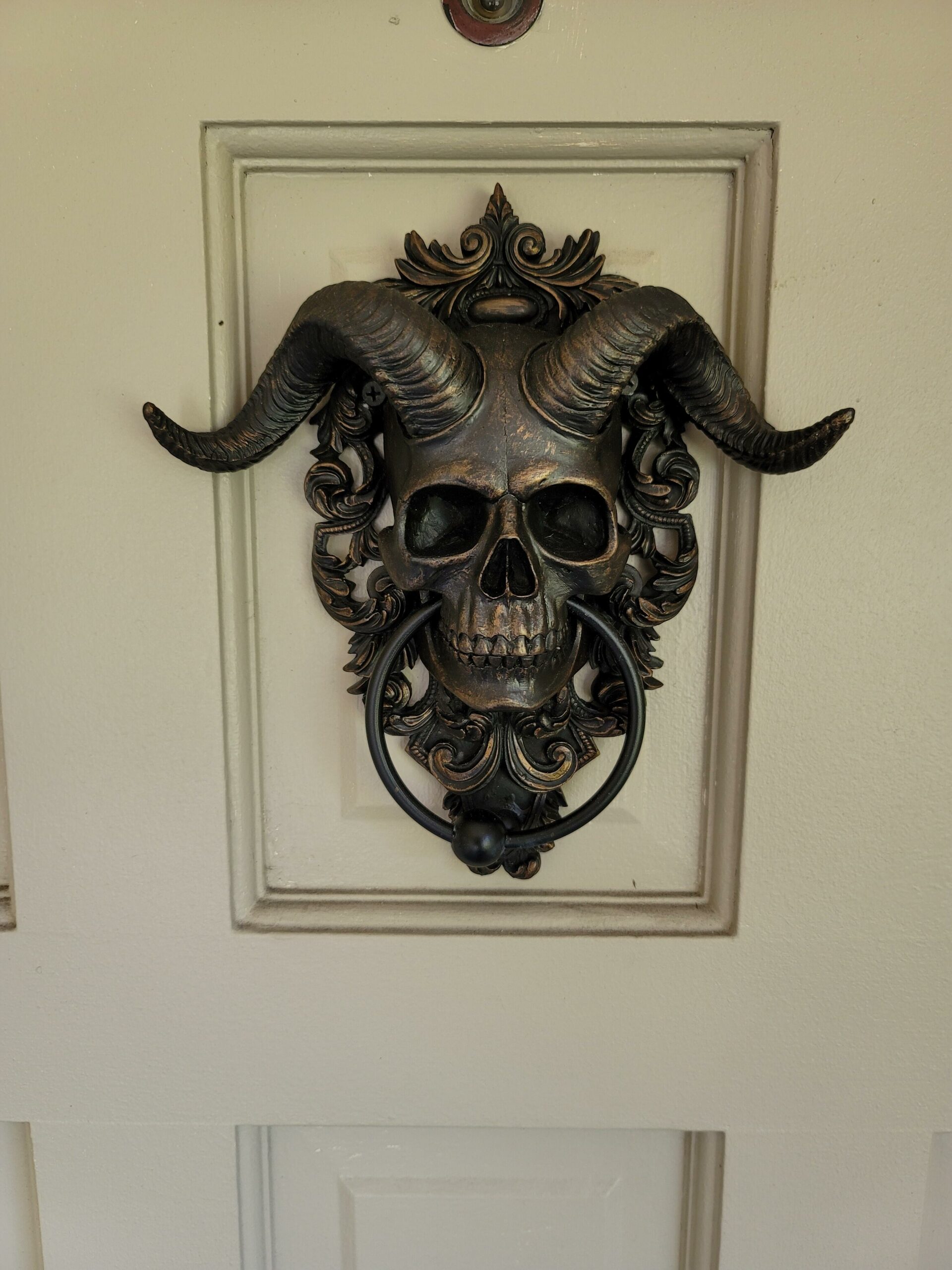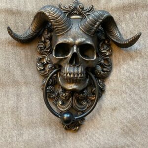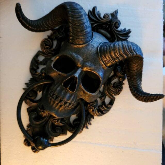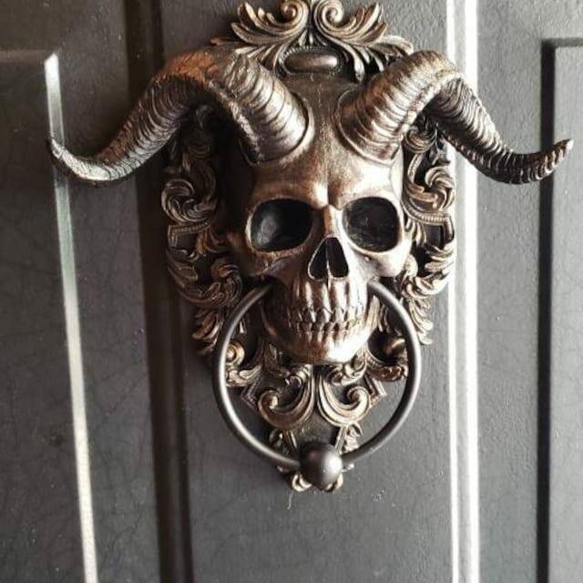 Large Horned Skull Door Knocker, Gothic Décor