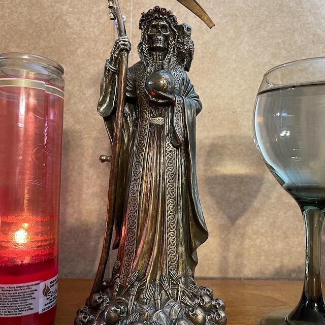 Large Santa Muerte Bronze Statue, Holy Death, Day of the Dead, Altar Statue