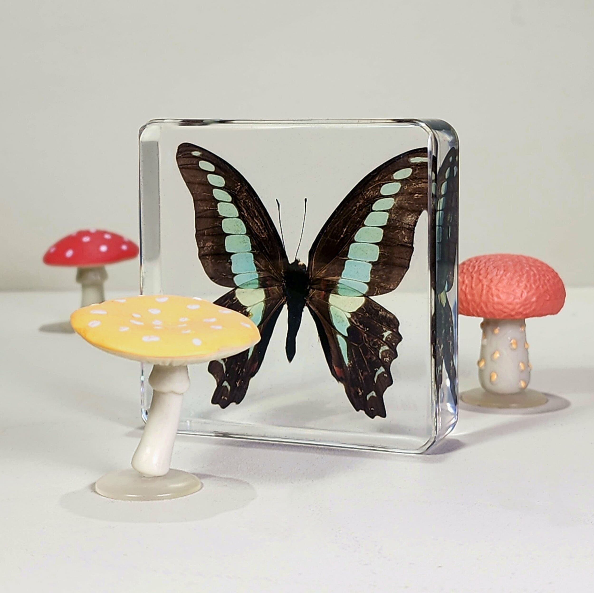 Blue Bottle Butterfly in Resin, Lucite, Butterfly Display, Graphium Sarpedon Linnaeus
