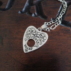 Gothic Style Ouija Board Planchette Necklace. The Ouija has been used for many years to commune with spirits, the planchette conjures up images of seances and the supernatural.