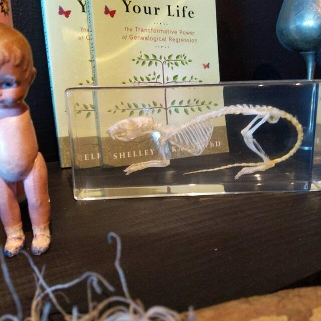 Approved by USFWS (Fish & Wildlife) legally obtained. This large stunning piece is of an entire Rat Skeleton in Resin. The detail and quality of the rat skull and skeleton is amazing! Makes for an excellent educational specimen. It’s also a perfect addition to any Oddities, Animal Skull, and Curiosity collection.