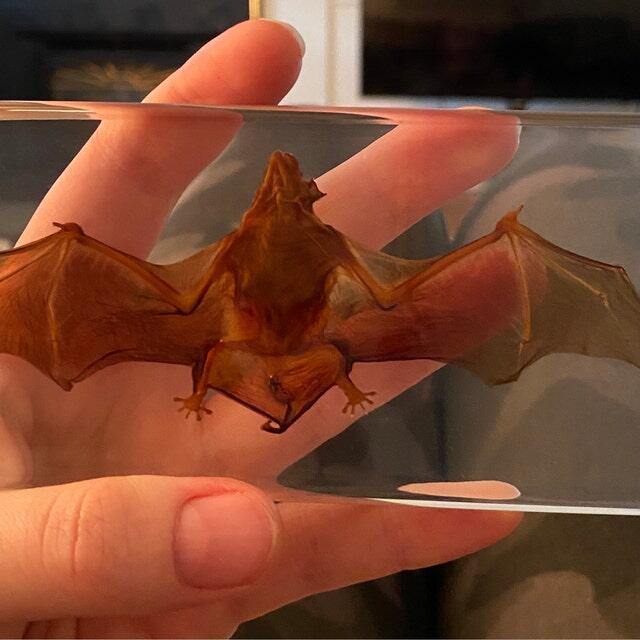 Real Bat in Resin, Real Bat in Lucite, Wings Open, Oddities, Curiosities