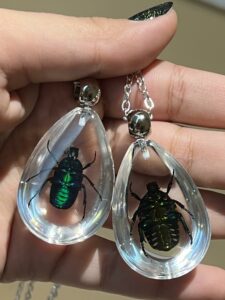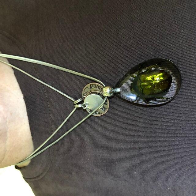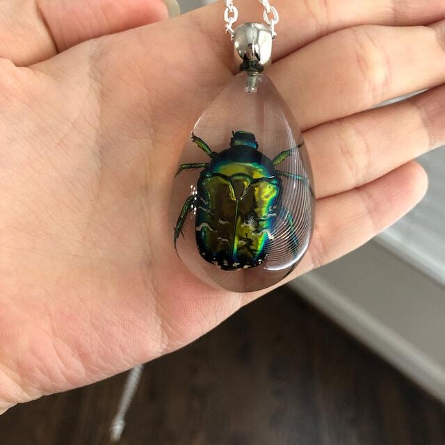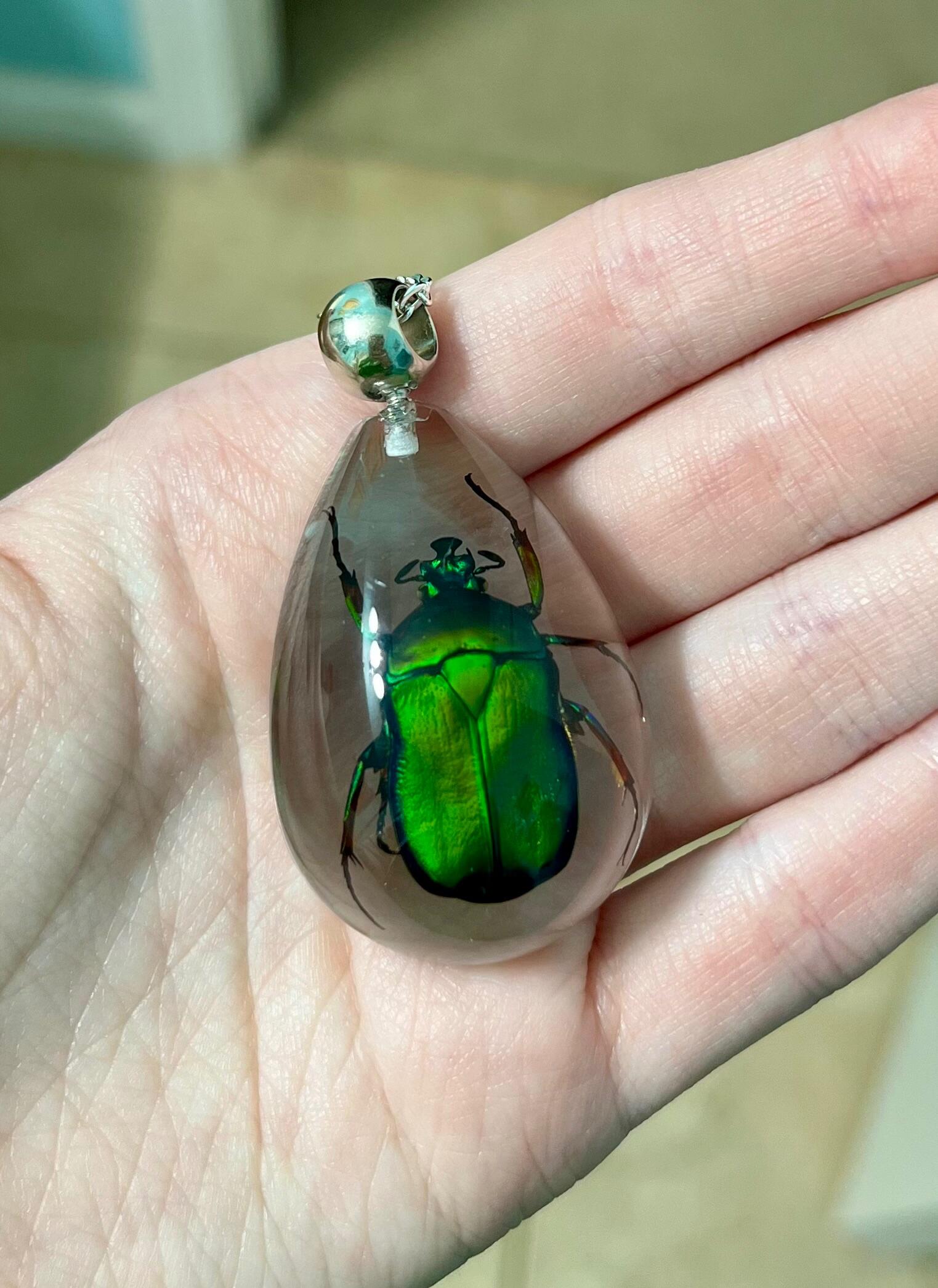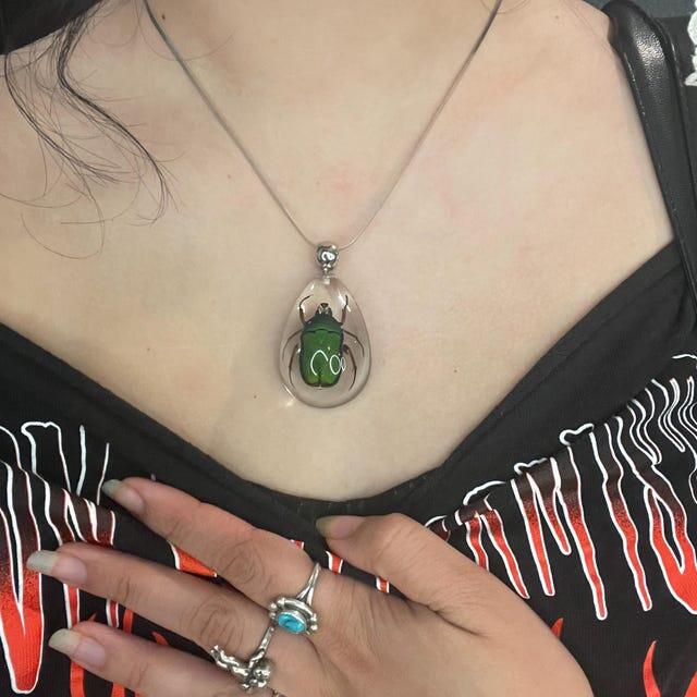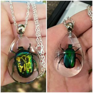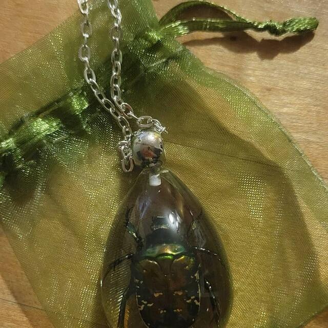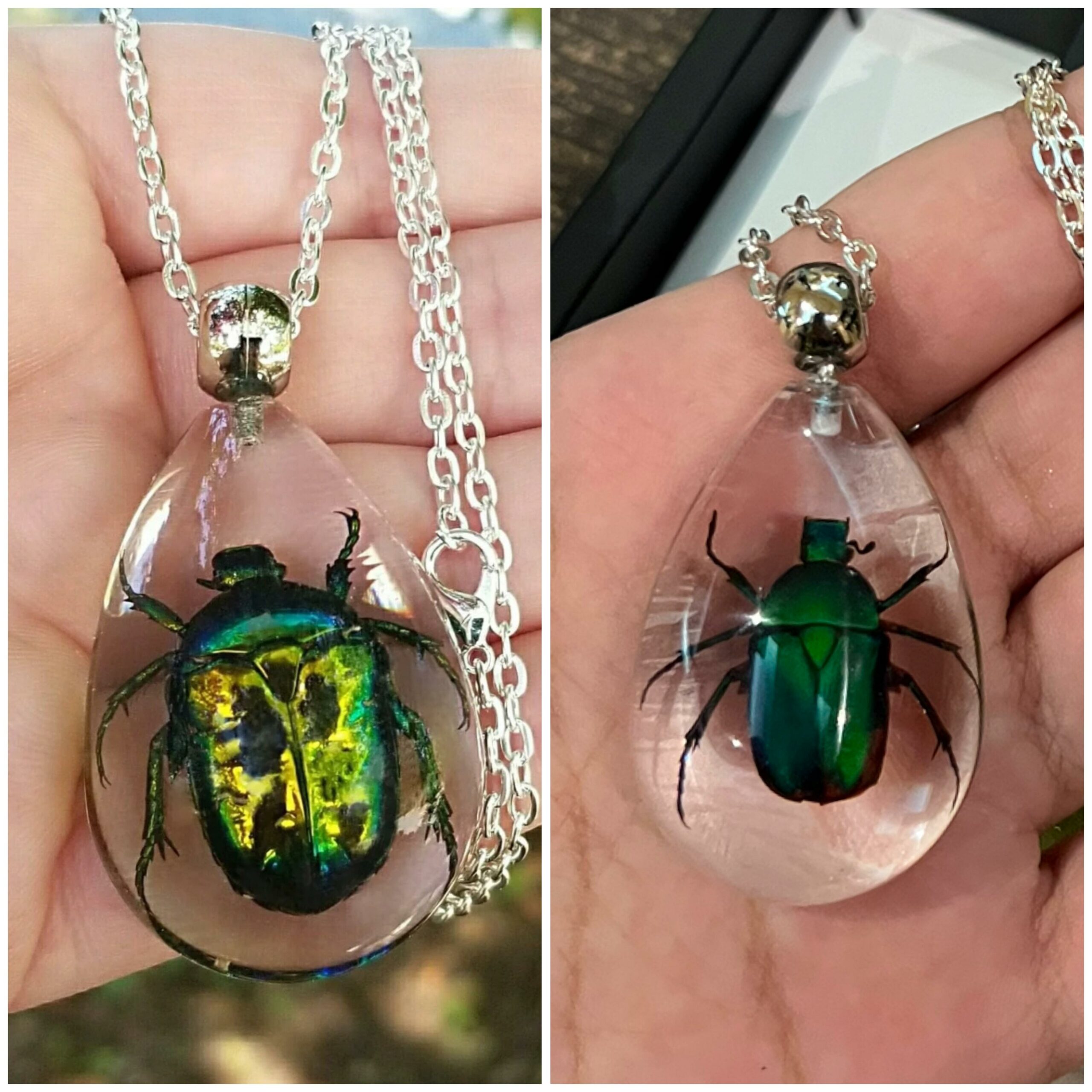 Real Beetle in Resin Necklace, Insects in Lucite, Chafer Beetle Pendant