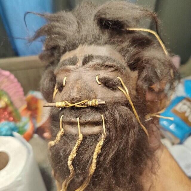 Shrunken Head, Real Leather and Hair, Oddities, Curiosities, 5 Inch