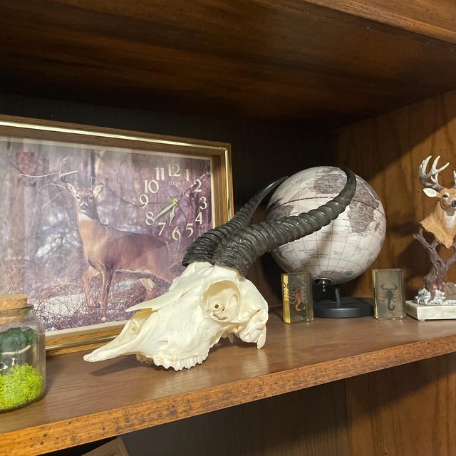 You will not receive the exact one shown but one similar, each skull is carefully hand selected to ensure it meets our high standards of quality. All are ethically and sustainably sourced. Approximate measurements: Skull alone: L=9″ W=4″ -Full w/Horns: L=16″ W=9″ H=8″
