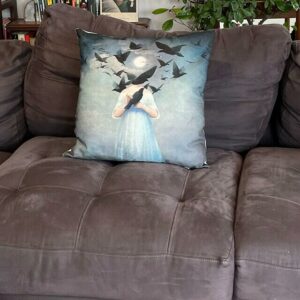 Bring a little bit of surrealism to your home decor with this out-of-this-world pillowcase! This gothic-inspired pillowcase features a dream-like image of a headless woman surrounding by a murder of crows. Perfect for adding a striking touch of style to your bedding or couch, this pillowcase is sure to be a conversation starter in any room! Add a touch of the surreal to your home decor today!