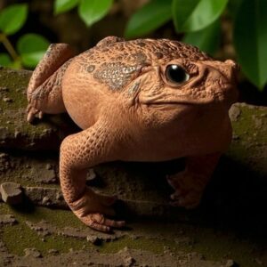 This is a real taxidermy cane toad, scientifically known as Rhinella marina. Its lifelike features, including textured skin and natural pose, make it a standout piece for collectors of oddities and curiosities.