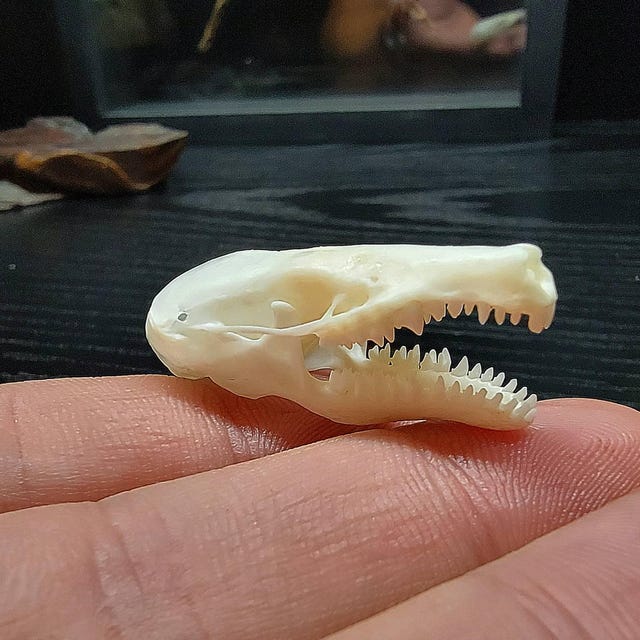Whoa! Check out this guys teeth! 44 teeth to be exact. Lets be glad this Animal Skull is from a tiny mole and not some huge beast.