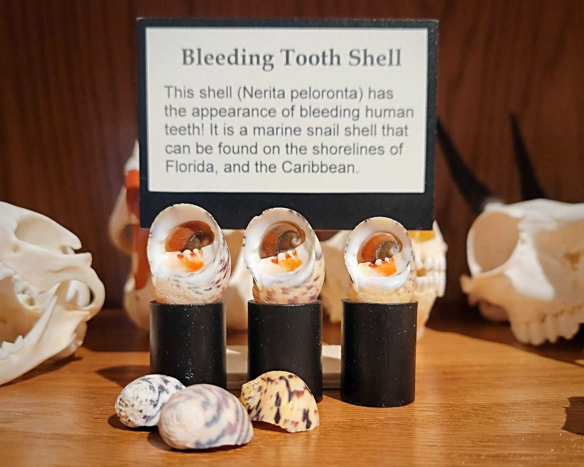 X6 -This sea shell actually mimics the look of bleeding human teeth! Hence its common name, Bleeding Tooth Shell. (Nerita peloronta) This shell is definitely one of natures little oddities.